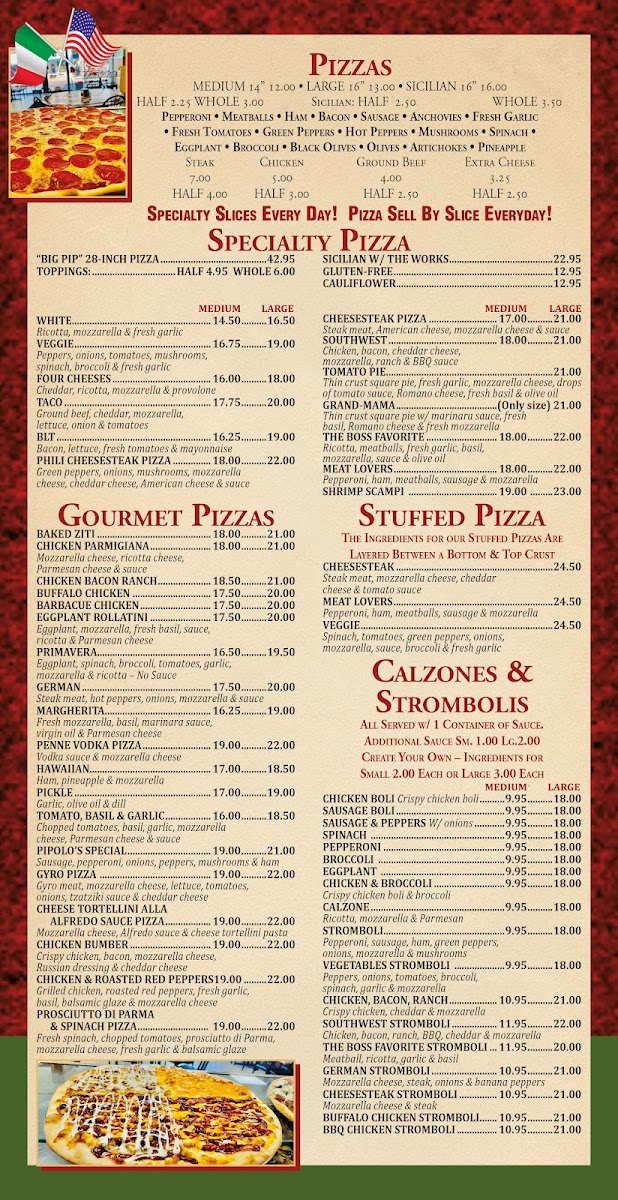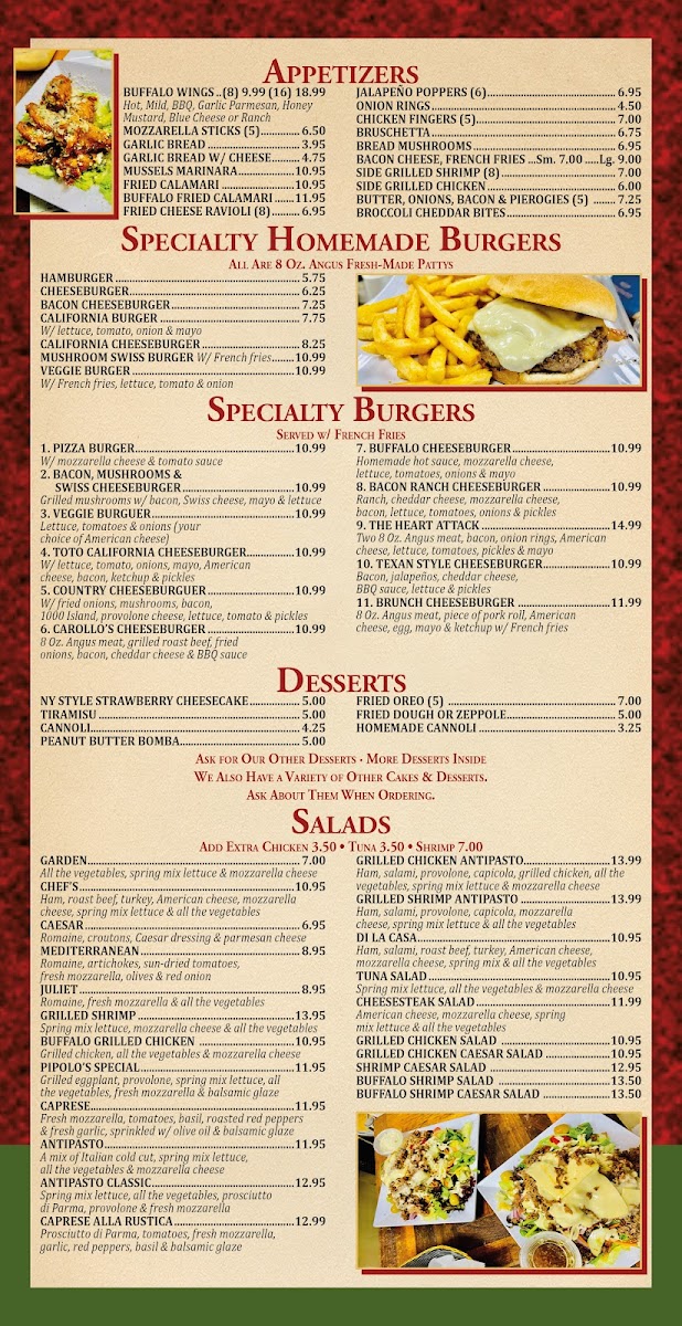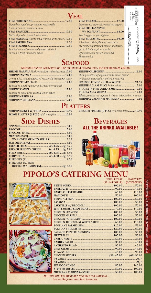 In short, Pipolo’s Pizza combines classic Italian-American favorites with inventive twists, all at a cozy neighborhood spot. From subs to strombolis, and soups to seafood, the extensive menu guarantees you’ll find your next craving right here.